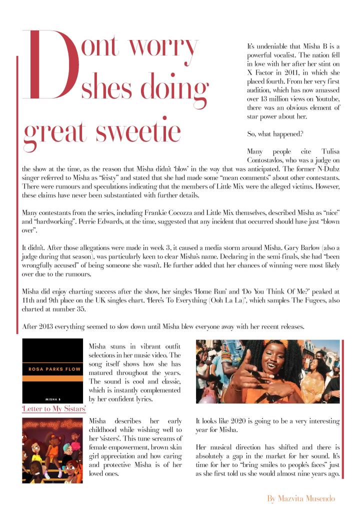 It looks like 2020 is going to be a very interesting year for Misha. Her musical direction has shifted and there is absolutely a gap in the market for her sound. It’s time for her to “bring smiles to people’s faces” just as she first told us she would almost nine years ago.